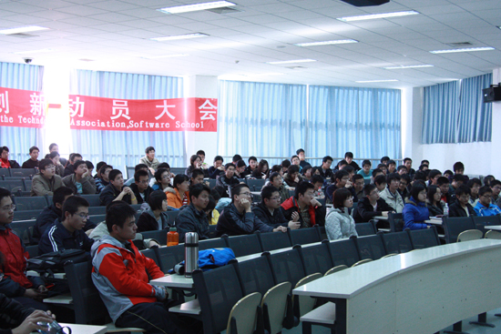 2009年3月7日,軟件學(xué)院科技類社團(tuán)招新暨2009年科技創(chuàng)新動(dòng)員大會(huì)在良鄉(xiāng)1號(hào)樓103房間成功召開。負(fù)責(zé)學(xué)院學(xué)生科技創(chuàng)新活動(dòng)的陳杰浩老師、各科技類社團(tuán)主席、2008年度獲得國家2等以上優(yōu)秀科技創(chuàng)新學(xué)生及本科2007級(jí)、2008級(jí)全體學(xué)生共計(jì)300多人參加了會(huì)議。大會(huì)由陳杰浩老師主持。