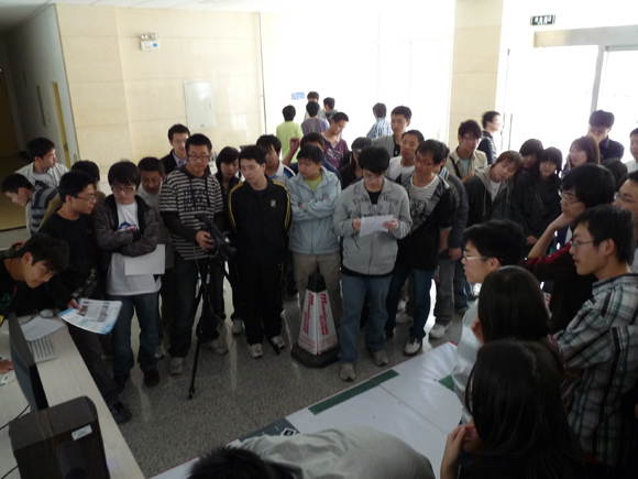 4月17日下午,軟件樓一層大廳熱鬧非凡,軟件學院本科2006級黨支部組織年級學生參觀學院參加北京理工大學第七屆“世紀杯”學生課外科技活動競賽優(yōu)秀作品展示。第七屆“世紀杯”學生課外科技活動競賽開始以來,學院積極組織學生參加比賽,共向?qū)W校推選13件作品,其中有8件作品已經(jīng)進入復賽并參加了學校的現(xiàn)場展示。在復賽展示活動中,這些作品表現(xiàn)優(yōu)異,較好地展現(xiàn)了軟件人的風采,展現(xiàn)了軟件學生的創(chuàng)新精神和專業(yè)技術能力。為了鼓勵學院更多的學生參與到科技創(chuàng)新活動中來,實施人才培養(yǎng)戰(zhàn)略,年級黨支部特組織了此次院內(nèi)展示活動。