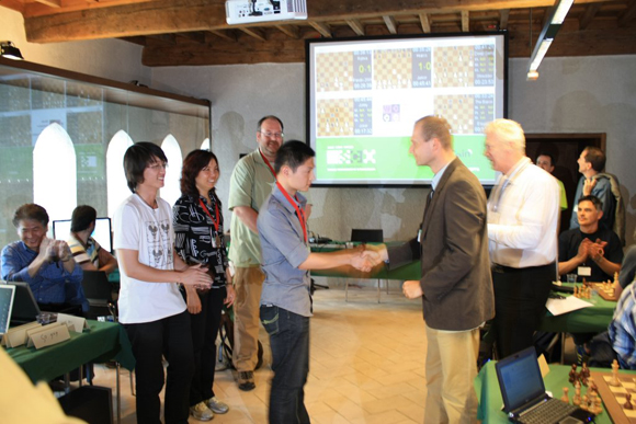 參賽的現(xiàn)場(chǎng),由于“中國(guó)深度”和“北理之芯”的注冊(cè)隊(duì)名分別為“BIT1”和“BIT2”,“BIT”的名字成為大家議論的焦點(diǎn)。同樣參加比賽的日本選手,甚至好奇地自己跟“BIT”較量起來(lái)。正如ICGA競(jìng)賽委員會(huì)主任Van Den Herik在頒獎(jiǎng)時(shí)連續(xù)宣讀“BIT1”和“BIT2”后所說(shuō),“This is Chinese party!”這屆計(jì)算機(jī)博弈錦標(biāo)賽,成為了中國(guó)博弈選手們的盛會(huì)。兩位參賽代表崔皓、林思然也在與各國(guó)學(xué)生、老師的交流中收獲了很多。