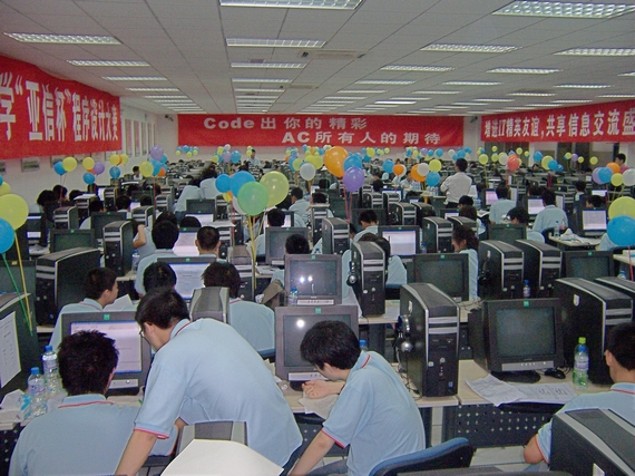 第二屆程序設(shè)計(jì)大賽在2007年6月舉行,大賽由北京理工大學(xué)教務(wù)處、軟件學(xué)院、計(jì)算機(jī)科學(xué)技術(shù)學(xué)院主辦,亞信科技(中國(guó))有限公司提供大力支持。“亞信杯”程序設(shè)計(jì)大賽于6月3日隆重舉行,共吸引了全校155支代表隊(duì),共計(jì)379名同學(xué)參賽。比賽分為計(jì)算機(jī)中心和三義廟機(jī)房?jī)蓚€(gè)賽區(qū)同步舉行,經(jīng)過(guò)6個(gè)小時(shí)的角逐,比賽取得了圓滿的成功。