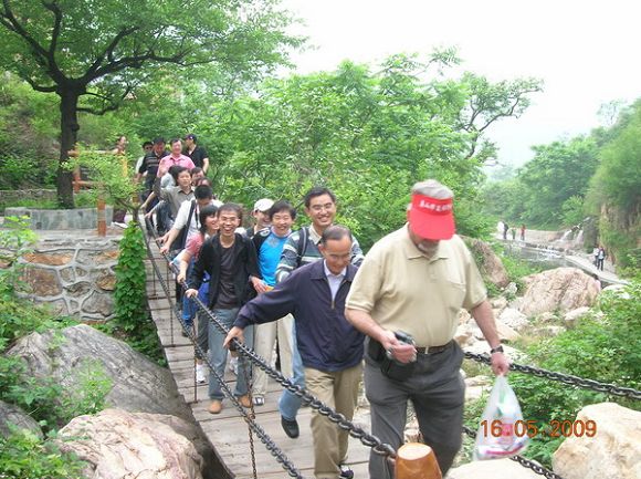 在石林峽自然風景區,同志們走在溪水旁,置身于天然大氧吧中,深吸著來自崇山峻嶺小草的芳香,人們說笑著,年輕的攙扶著年紀大的,走在前面的不斷回頭招呼著后面的伙伴,感覺無比的輕松,……。工會主席蔣本珊老師雖然腳傷還未痊愈,但是為了帶動同事們參加活動,她自己忍受著腳傷的痛苦和大家同行,因在山路上行走比較困難,青年教師李侃同志看到此情,主動陪伴著蔣老師甘當一個“小拐杖”,途中他從最陡峭的天梯上走下來,護送蔣老師返回集結地,李老師放棄了個人的游樂,表現出同志之間互相關心,互相愛護的精神。