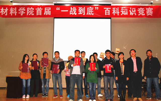 在大家的熱烈掌聲中材料學(xué)院首屆“一戰(zhàn)到底”百科知識(shí)競(jìng)賽圓滿落下了帷幕。選手和觀眾都紛紛表示獲益良多,不僅收獲了知識(shí),也增進(jìn)了與他人的協(xié)作能力,加深了同學(xué)們之間的友誼。
