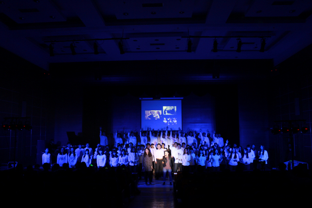 北湖季樂隊的《Antik》、《Blut》時尚、動感而激情的旋律將音樂會再次推向高潮,在別樣的曲風(fēng)中,現(xiàn)場再次沸騰。最后,一首由全體同學(xué)參演的合唱《讓世界充滿愛》,為本次結(jié)課晚會畫上圓滿的句號,并在現(xiàn)場熱烈的掌聲與歡呼聲中緩緩落下帷幕。