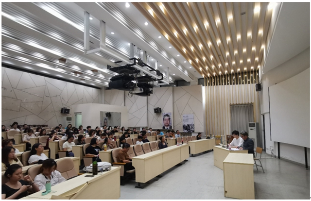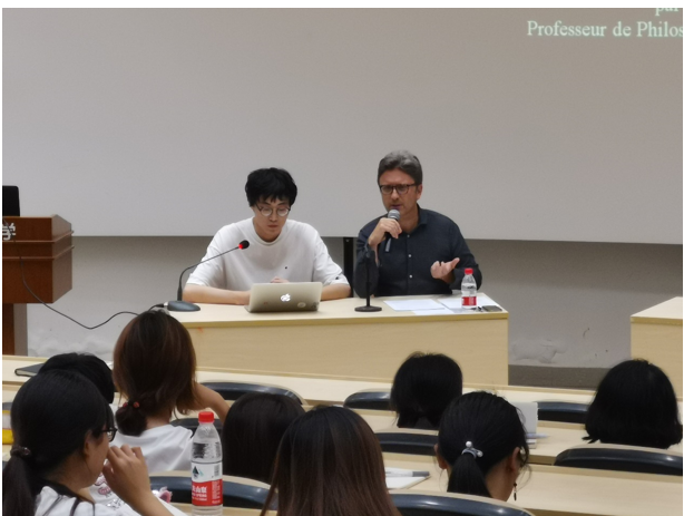學(xué)術(shù)講座前,佘仸爾先生于9月3日以及9月4日上午參加了在體育館J13教室舉行的主題為“中西傳統(tǒng)藝術(shù)”的沙龍,通過中西傳統(tǒng)藝術(shù)文化的交流與對話,加深師生對中西方美學(xué)的感知和認(rèn)識。