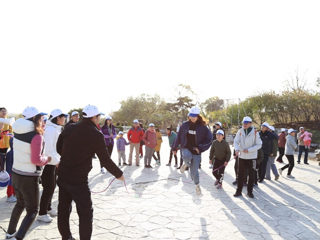 登山活動中還穿插開展了分組跳大繩比賽。參賽隊員全力配合、齊心協(xié)力,展開激烈角逐;圍觀助陣的教職工熱情高漲,加油聲、喝彩聲此起彼伏,現(xiàn)場一片歡樂的氣氛。
