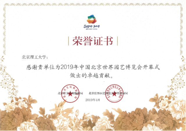 北京世界園藝博覽會向北理工頒發榮譽證書