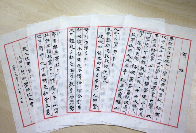 老校友在賀信中提到,北京理工大學(xué)、中國人民大學(xué)、中國農(nóng)業(yè)大學(xué)、北京外國語大學(xué)、中央音樂學(xué)院、中央美術(shù)學(xué)院、中央戲劇學(xué)院、中央民族大學(xué)、延安大學(xué)等九所當(dāng)年誕生在寶塔山下、延河之濱的高校,在首都北京共同發(fā)布了延河高校人才培養(yǎng)聯(lián)盟宣言,原延安自然科學(xué)院校友會(huì)在京的同學(xué)們感到十分高興,向九所大學(xué)的教職員工、同學(xué)們表示最熱烈的致敬和祝賀。