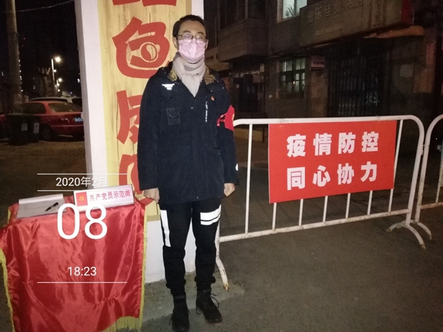 學(xué)生黨員石堅(jiān)在疫情防控“黨員示范崗”