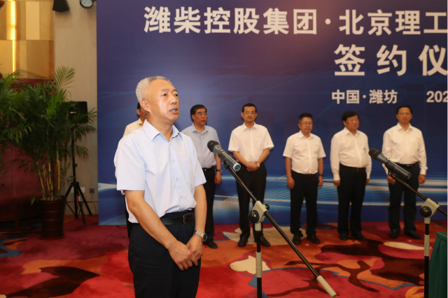 8月24日,北京理工大學與濰柴控股集團有限公司(以下簡稱濰柴集團)簽署戰略合作協議。山東省副省長凌文,濰坊市委書記惠新安,濰柴集團董事長譚旭光,黨委書記、常務副總經理徐宏,北京理工大學校長張軍、副校長王博、校長助理李振鍵出席簽約儀式。簽約儀式由徐宏主持。
