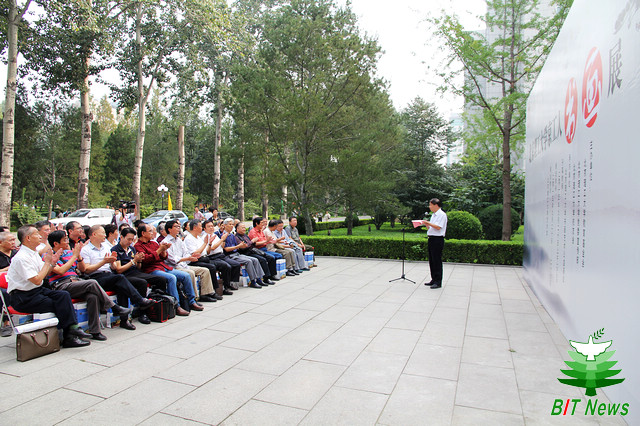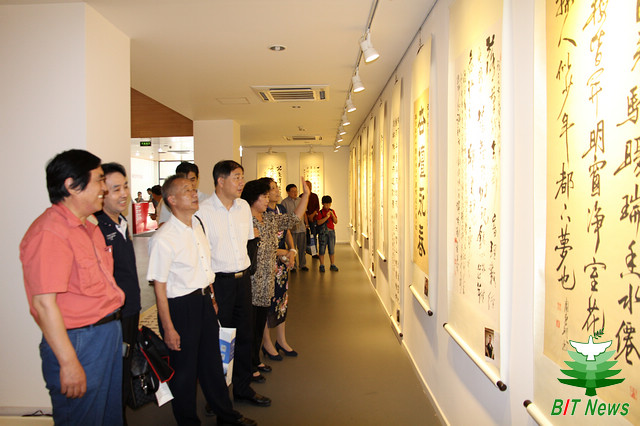 學校辦公室、黨委宣傳部、校友會辦公室、校團委、檔案館、圖書館、離退休工作處、人文學院、設計學院、國際教育學院和教育基金會辦公室負責人,離退休教師代表,學生代表參加書畫展開幕儀式。