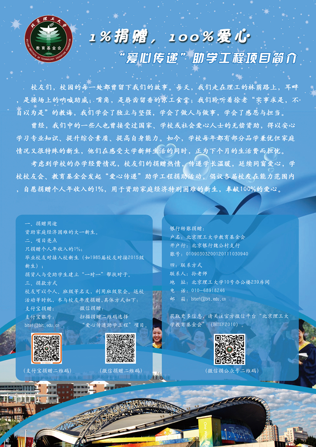 獲取更多信息,請關(guān)注官方微信平臺“北京理工大學(xué)教育基金會”(BITEF2010)。
